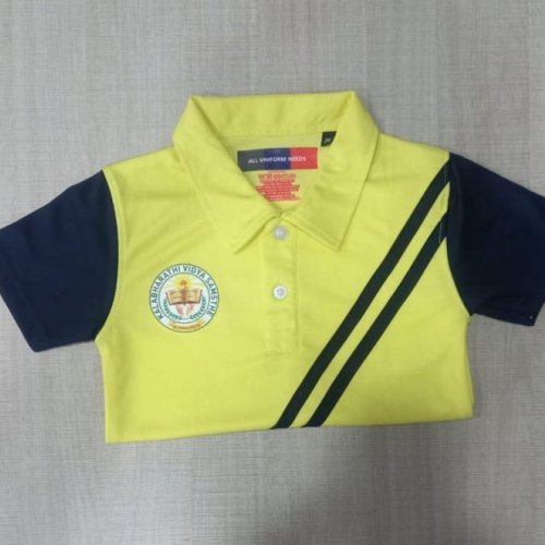 Poly Cotton Half Sleeve Yellow School Uniform T Shirt